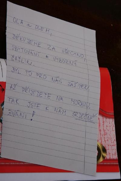 Děkovný dopis našim hostitelům, který vytvořily holky.