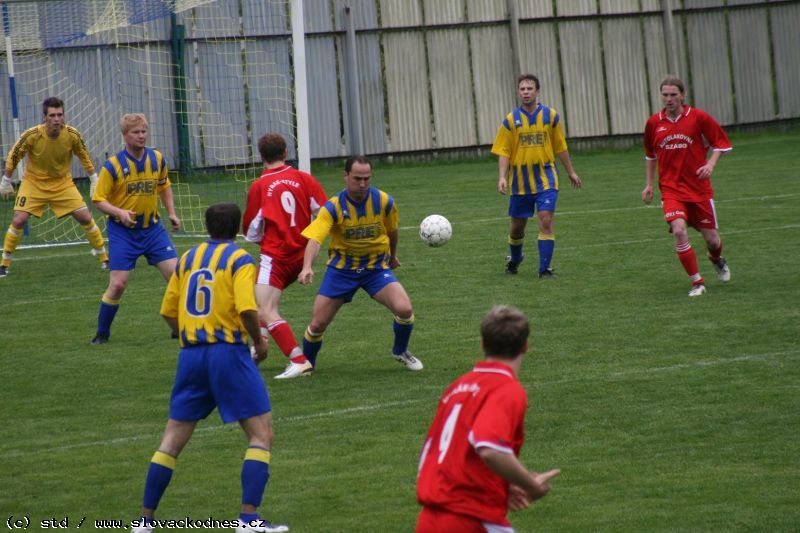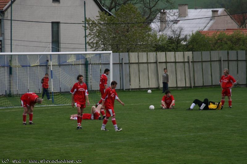 V červeném úplně vlevo Martin Kusák, který vstřelil první branku Lhoty