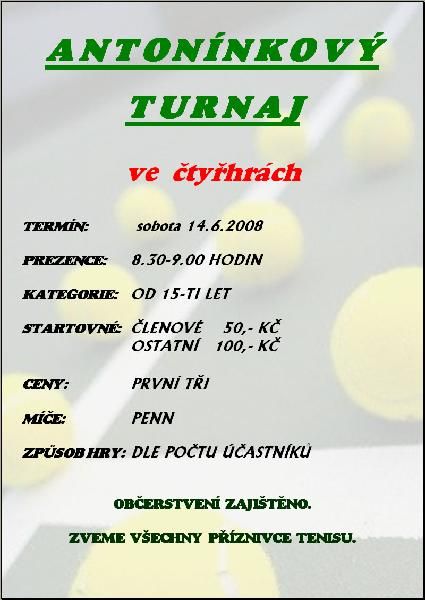 Pozvánka na lhotský tenisový turnaj čtyřher