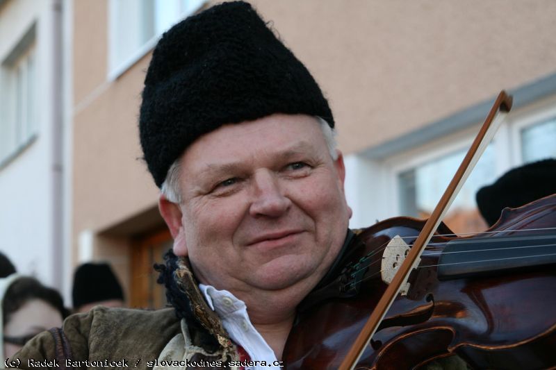 Nejdůležitější je ale muzika, ta horňácká je hraná naplno, hutně a skoro až do vysílení, na jménech skoro nezáleží, ať hraje třeba muzika Petra Mičky, Jožky Staši, nebo v případě nedělního fašanku bratrů Kubíkových.