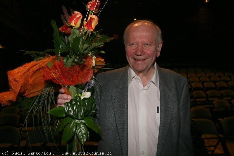 Bohužel z různorodých, především zdravotních důvodů, se před časem prakticky uzavřel před světem, a tak nebylo ani jisté, jestli vůbec do divadla přijde. Nakonec se objevil i se svou paní, zasedl do hlediště a nakonec si dokonce i na pódiu zazpíval - mimochodem, velmi dobře.