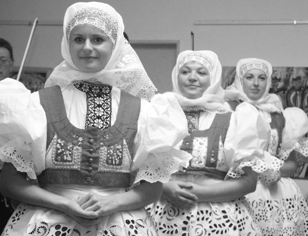 Lenka Jurečková mezi ženami z Bzence, s kterými také na vernisáži zazpívala.