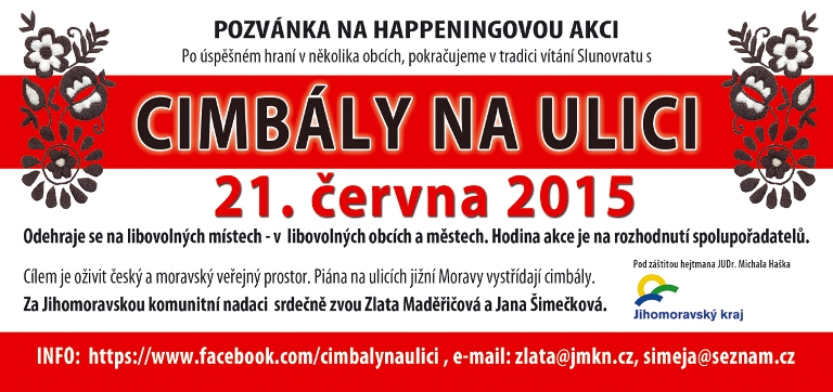 Cimbalisté a další muzikanti! Prosím, vytáhněte v neděli 21. června na ulici cimbály i další hudební nástroje... Ať Slovácko přivítá Slunovrat pořádným mejdanem! TADY je plakát, přihlaste se, díky!